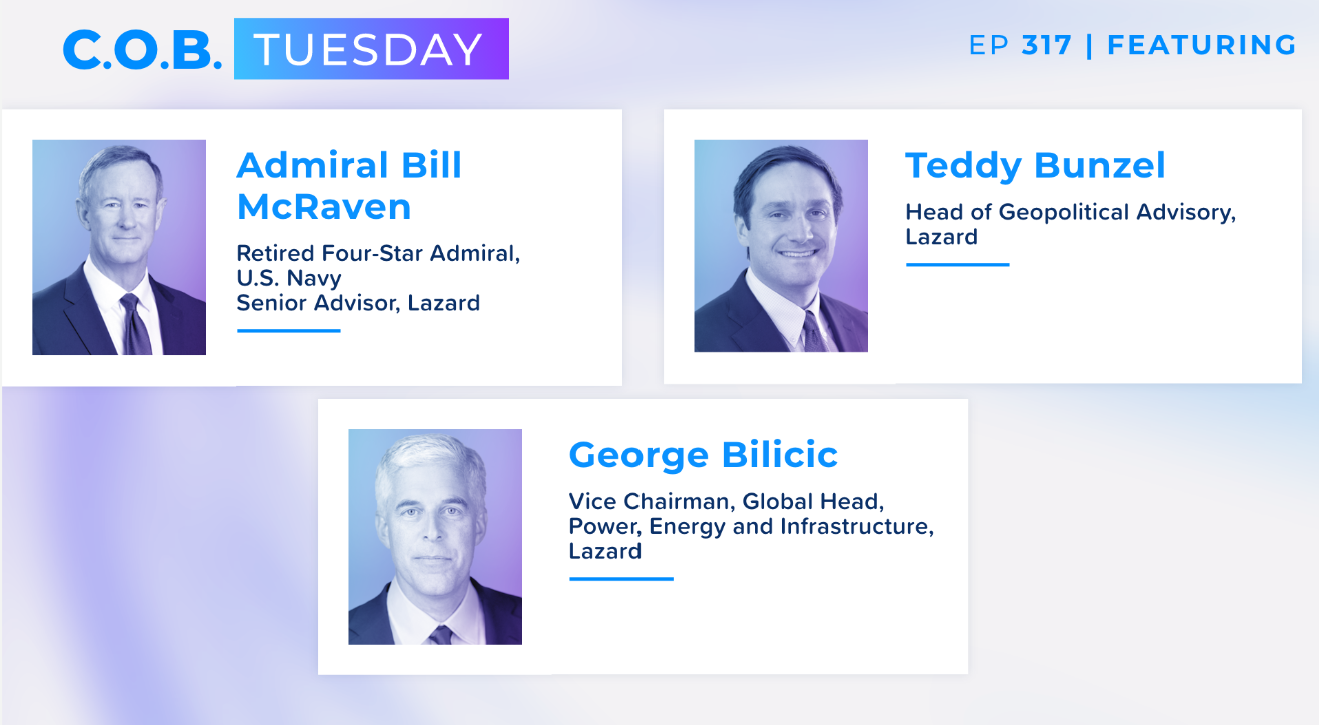 On March 3, Admiral Bill McRaven, Senior Advisor at Lazard; Theodore Bunzel, Head of Lazard Geopolitical Advisory; and George Bilicic, Lazard Global Head of Power, Energy & Infrastructure, joined Veriten’s C.O.B. Tuesday podcast for a timely conversation on geopolitics, global security and energy markets.