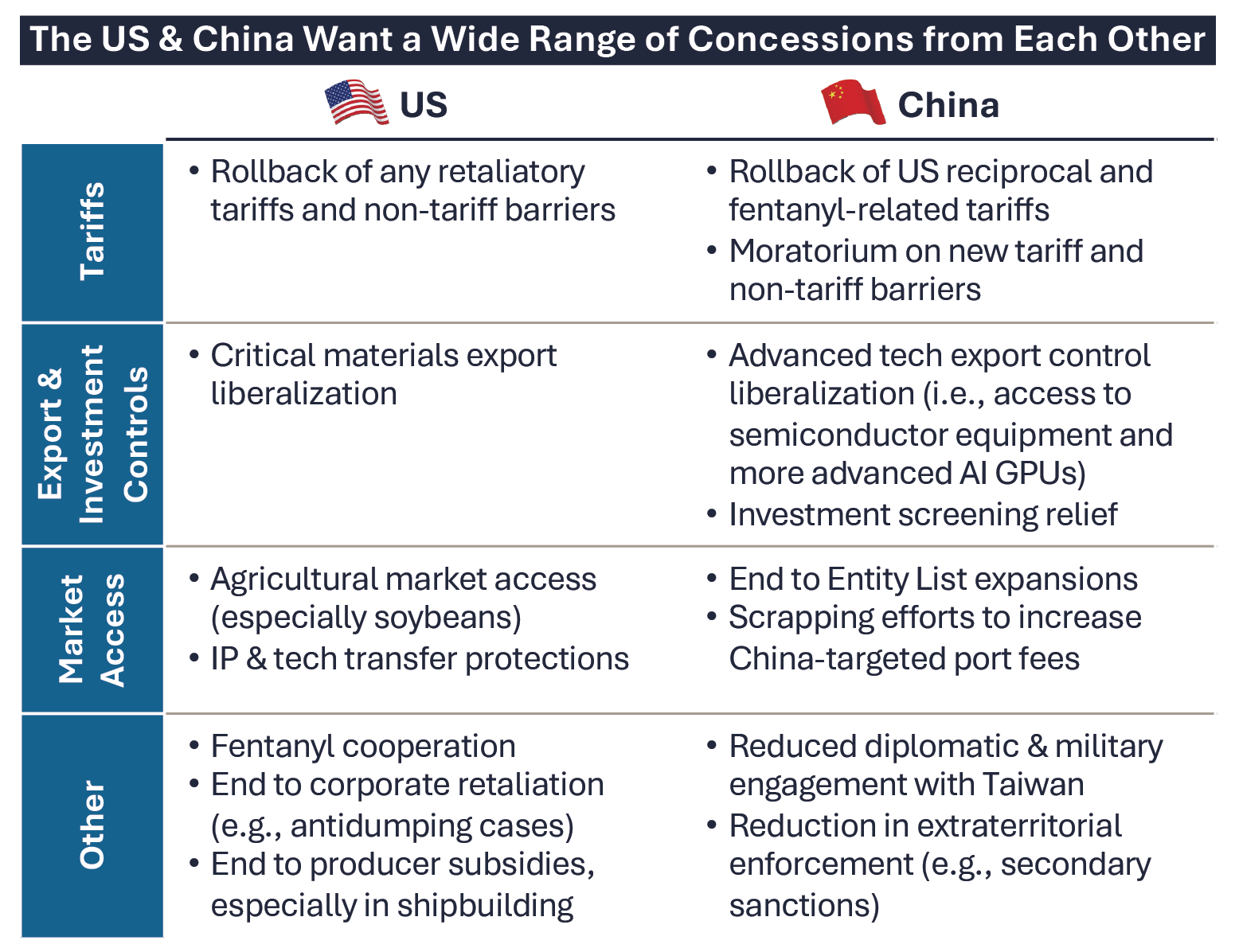 The US and increasingly Europe are beginning to treat critical minerals as a top security risk, driven by China’s recent expansion of export controls on rare earth elements and downstream products, which have already created supply chain shocks. Absent a strong web of these partnerships to institutionalize allied supply chains for minerals and advanced manufacturing, as well as credible demand signals that make non-China processing investable, China will retain leverage at key input choke points.