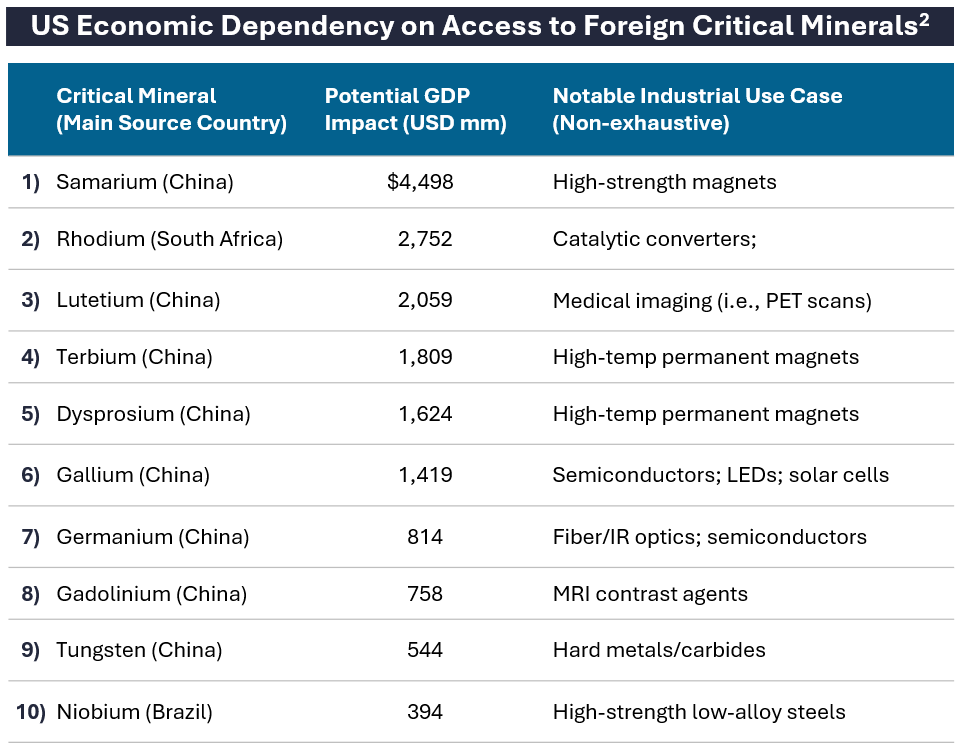 2. Table shows the 10 commodities with the largest expected US GDP loss under a disruption of US net imports according to US Geological Survey.