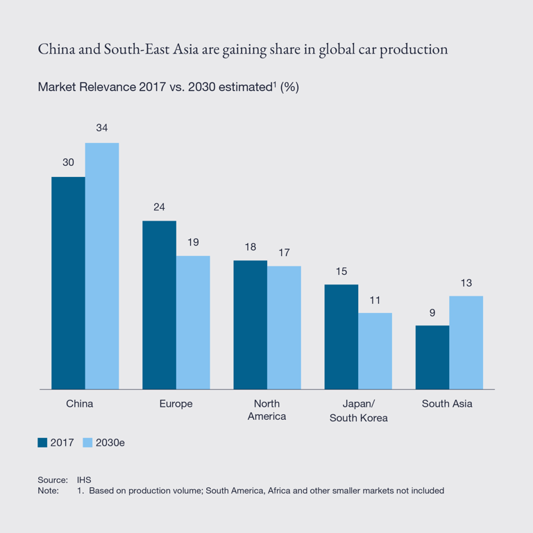 - The automotive supplier industry is projected to grow by 4% per annum until 2030, with cumulative growth of 30%, and reaching a total value of nearly USD $1.3 trillion – with growth coming primarily from Asia.