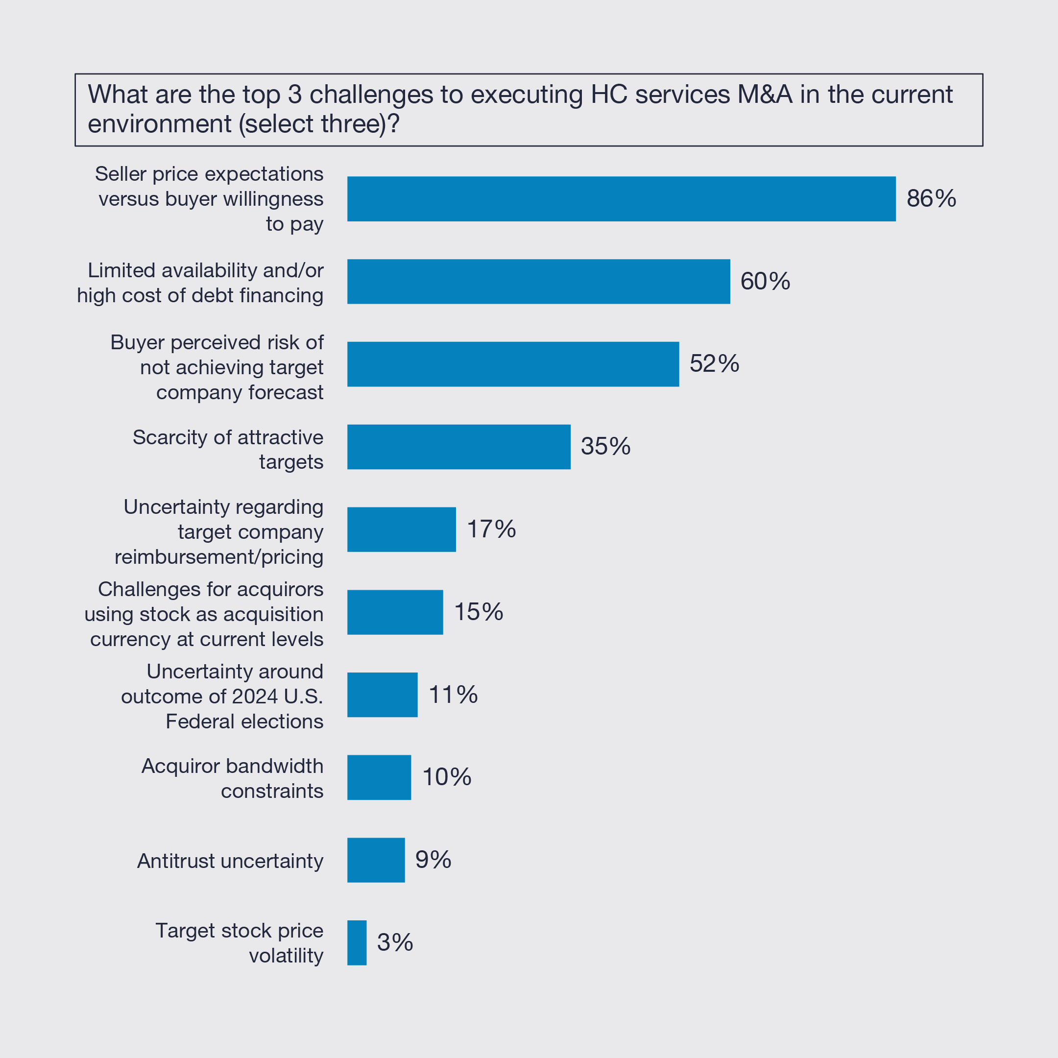 2. While views are split on whether large-cap consolidation will increase or stay the same in the first half of 2024, private equity platform acquisitions, bolt-on acquisitions and corporate carve-outs are expected to increase. Greater alignment of buyer and seller price expectations, greater availability of affordable financing and lower perceived risk among buyers in achieving target company forecasts will be important catalysts of rising strategic activity.